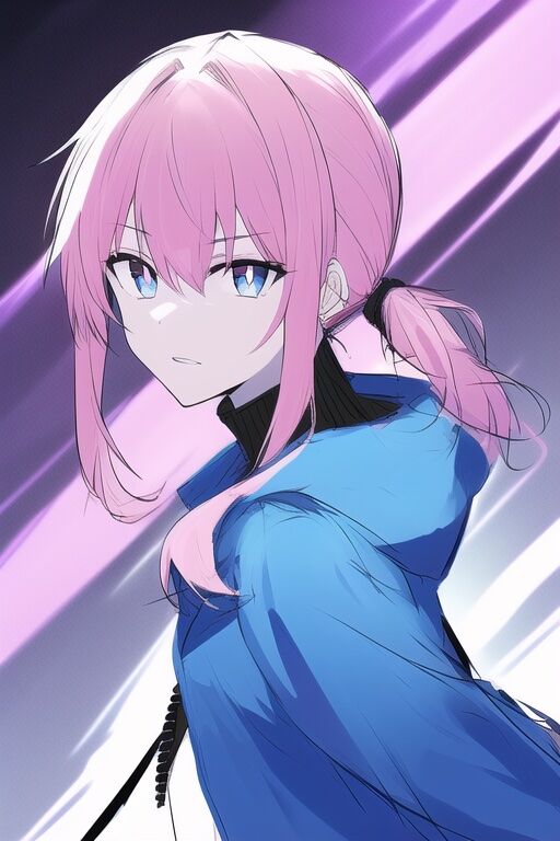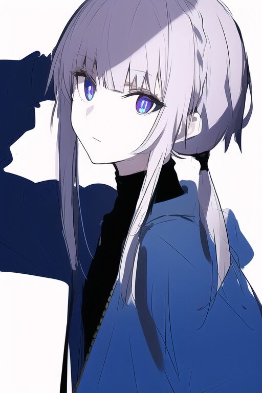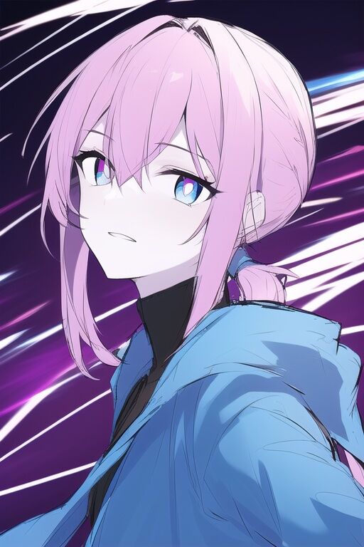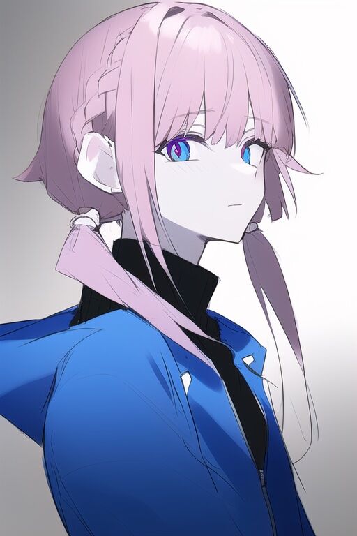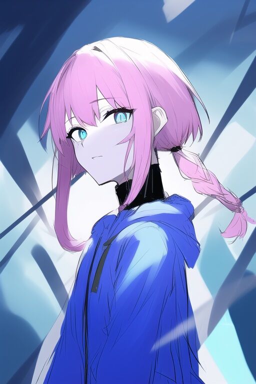 low ponytail, side ponytail, {hair over shoulder}, oversized clothes, arm down, from side, spiral, scared, zipper, upper body, {black turtleneck}, sketch, a girl, {{{virtual kaf}}}, pale pink hair, medium hair, bangs, okappa, side braid, blue purple eyes, red pupils, ringed eyes, black inner, {{dark blue hoodie}}, dark, blue parka, hooded coat, sidelocks, 1girl, upper body, looking at viewer, {{{{dynamic angle}}}}, bright color, ネガティブプロンプト:loli, boy, adult, old, child, 2girls, huge breasts, bowl , black clothes, loli , big head, holding, holding thing, rice bowl, black hoodie, black parka, thing, kawaii, hood up, simple background,