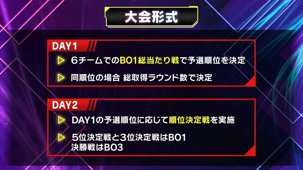 にじばろ(6チーム) 1日目BO1×5、2日目順位決定戦BO1or3