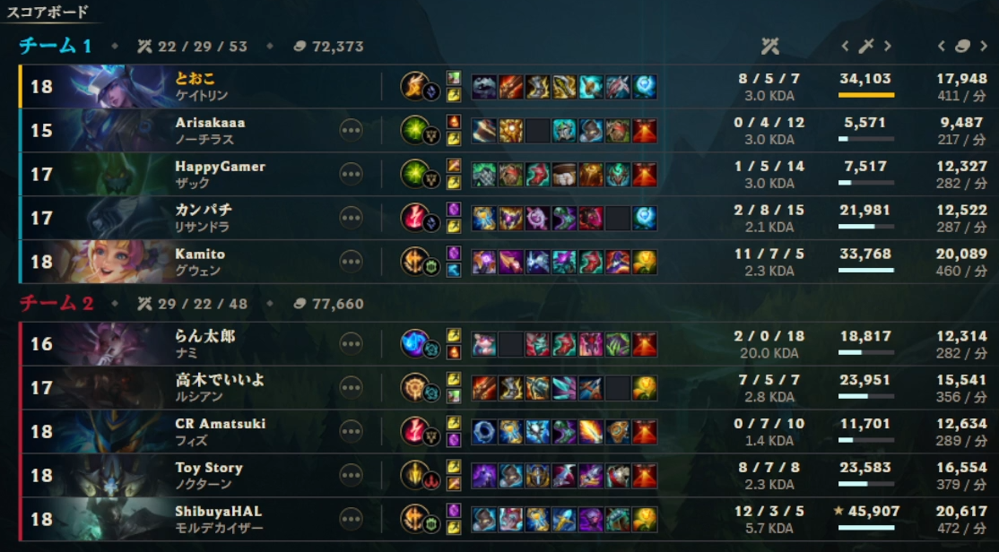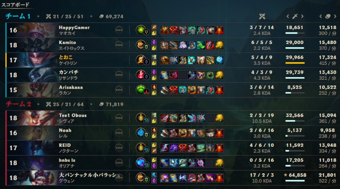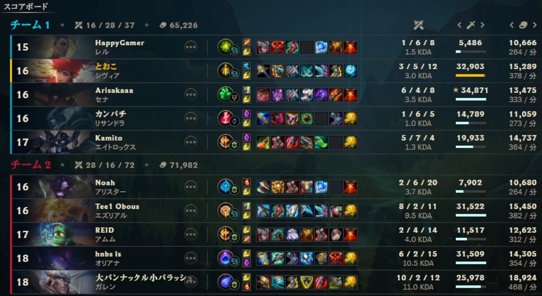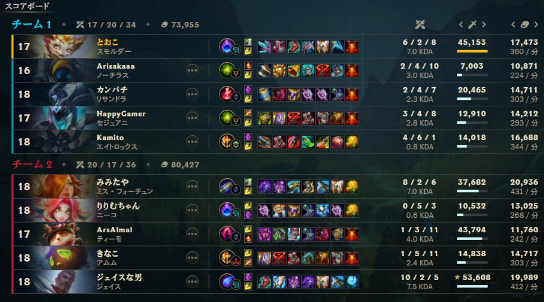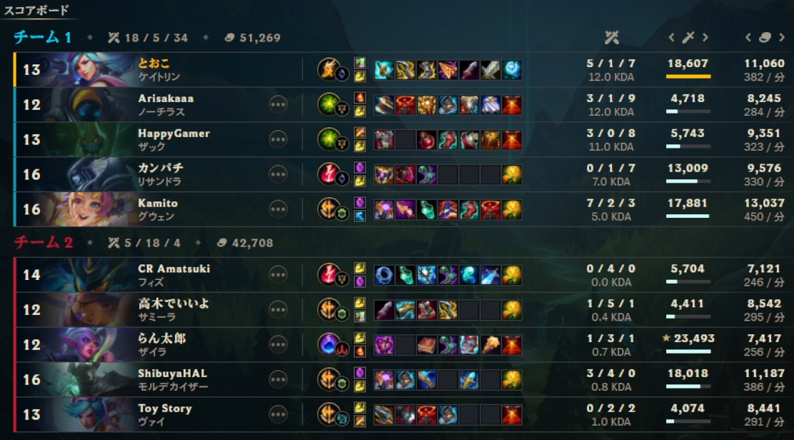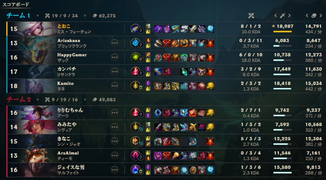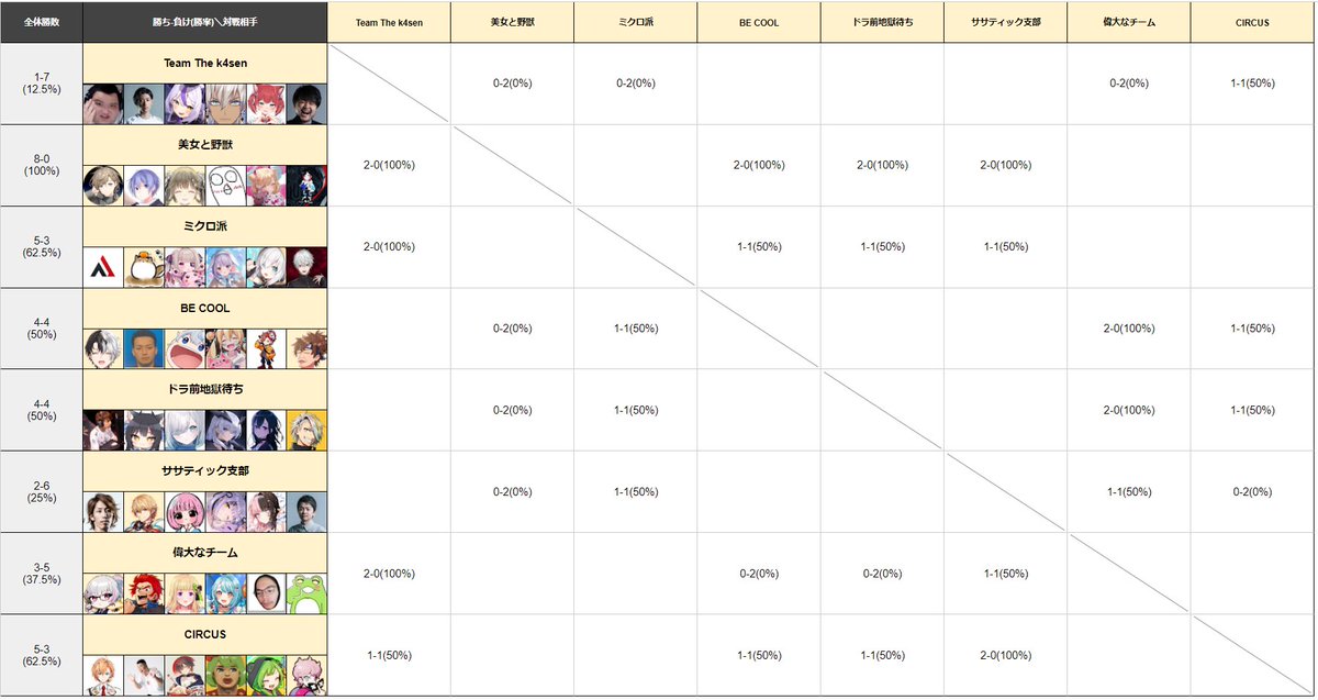 2/7本番の「LoL The k4sen」2日目を終え、全スクリムの結果です