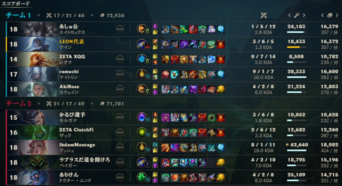 2/7本番の「LoL The k4sen」2日目を終え、全スクリムの結果です