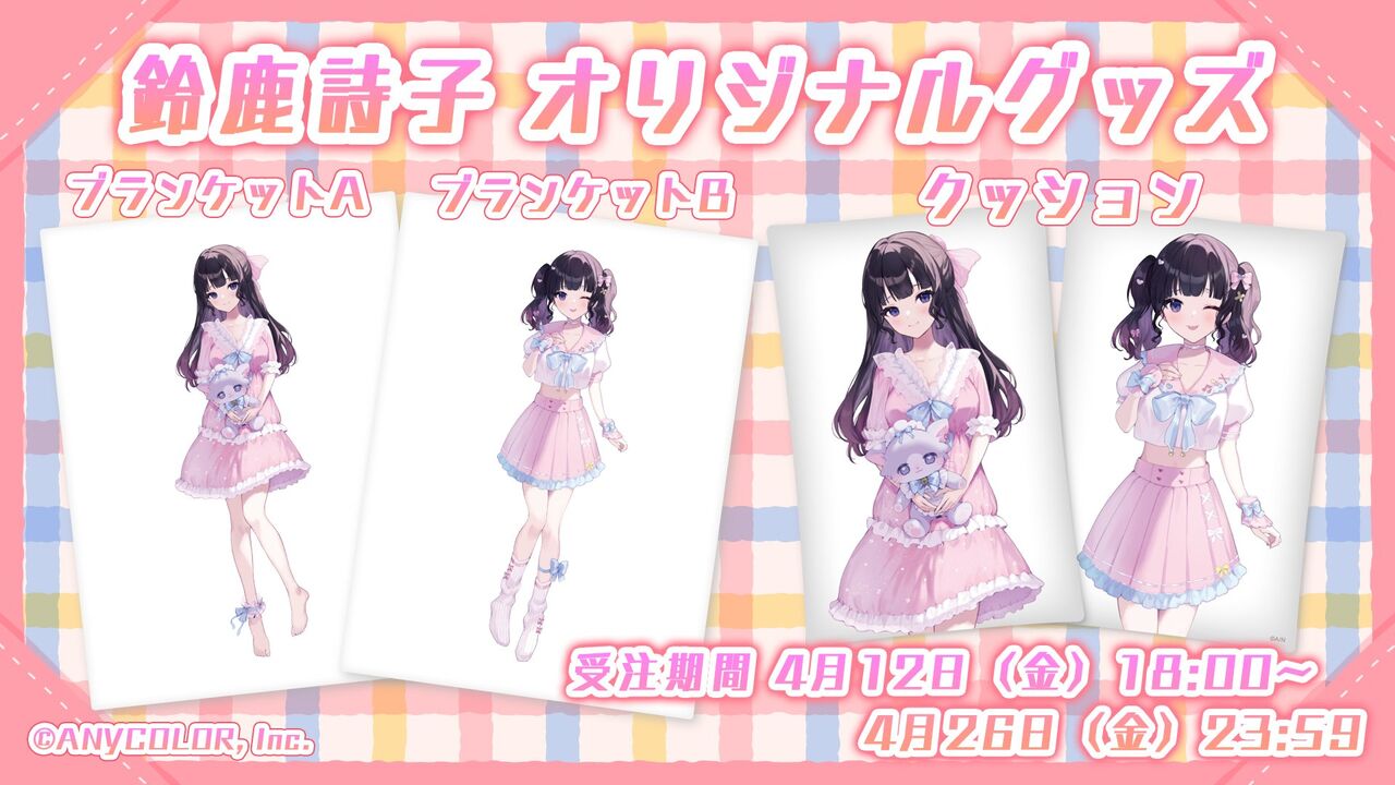 4/12(金)18:00から にじさんじオフィシャルストアにて、鈴鹿詩子( @suzukautako)オリジナルグッズの販売が決定!