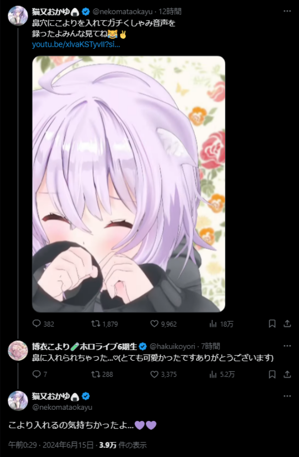 なでなでしてるおかゆんと泣いてるころさんまじてぇてぇすぎて尊死する……!!