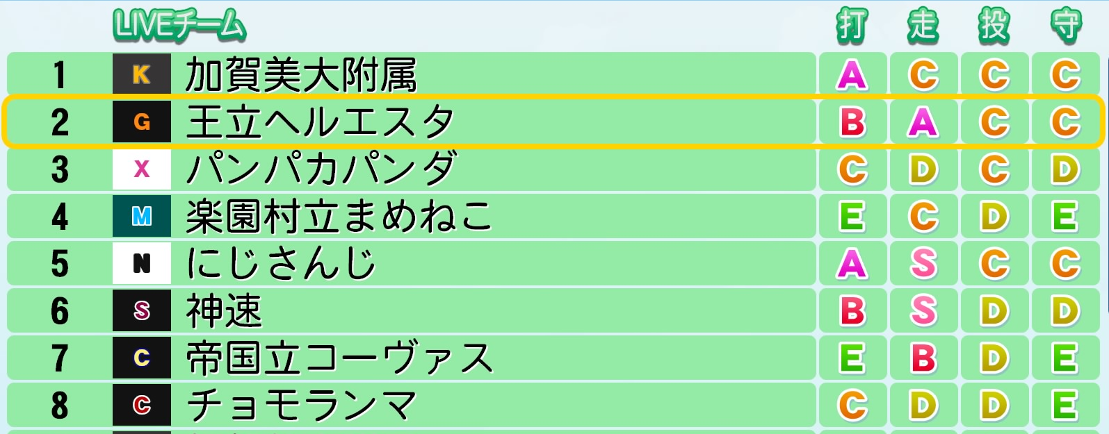 全チームアップロードされたっぽいからゲーム内のざっくりしたチーム評価画像出してみた