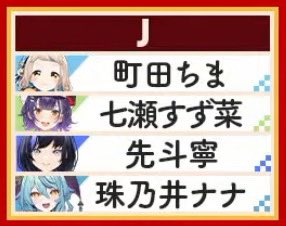 J:町田ちま・七瀬すず菜・先斗寧・珠の井ナナ