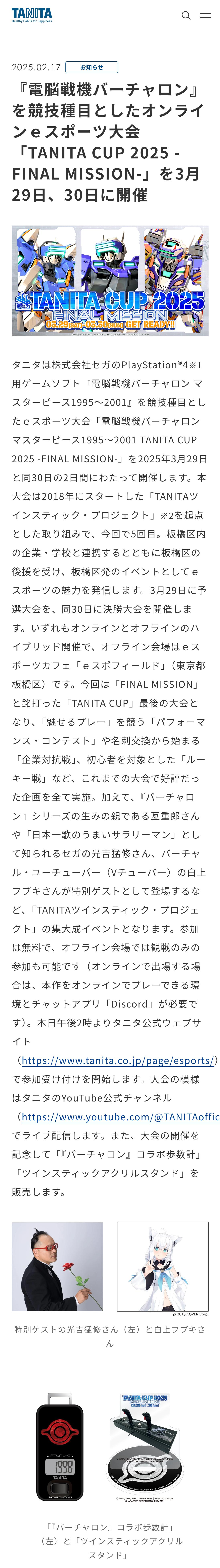 タニタの社長がバーチャロン好きという一心でセガが作らない周辺機器をクラファンしただけで、一切本業と関連はない
