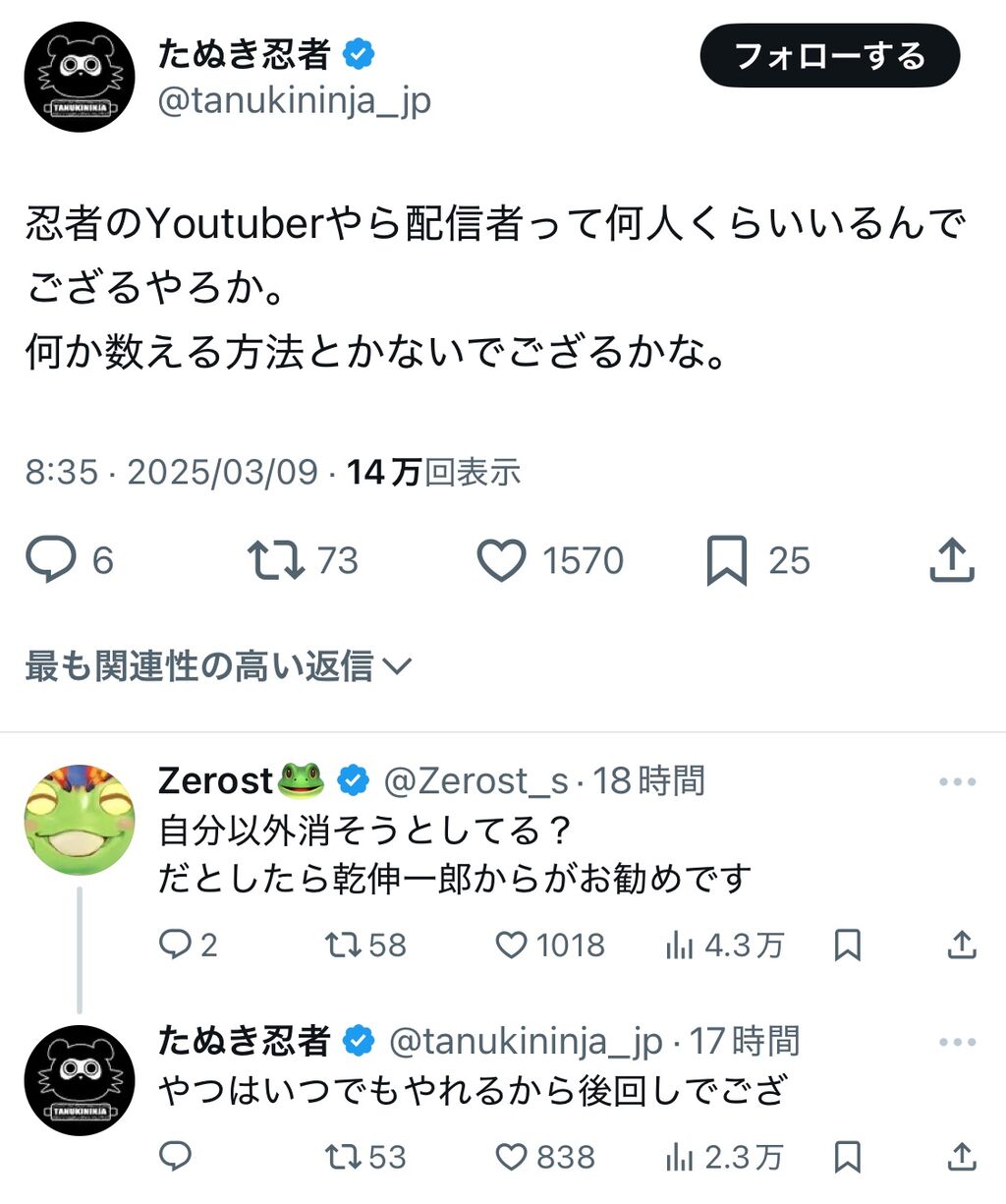 周囲のそれこそファンを自称する奴らですら一生忍者忍者言い続けてるの草