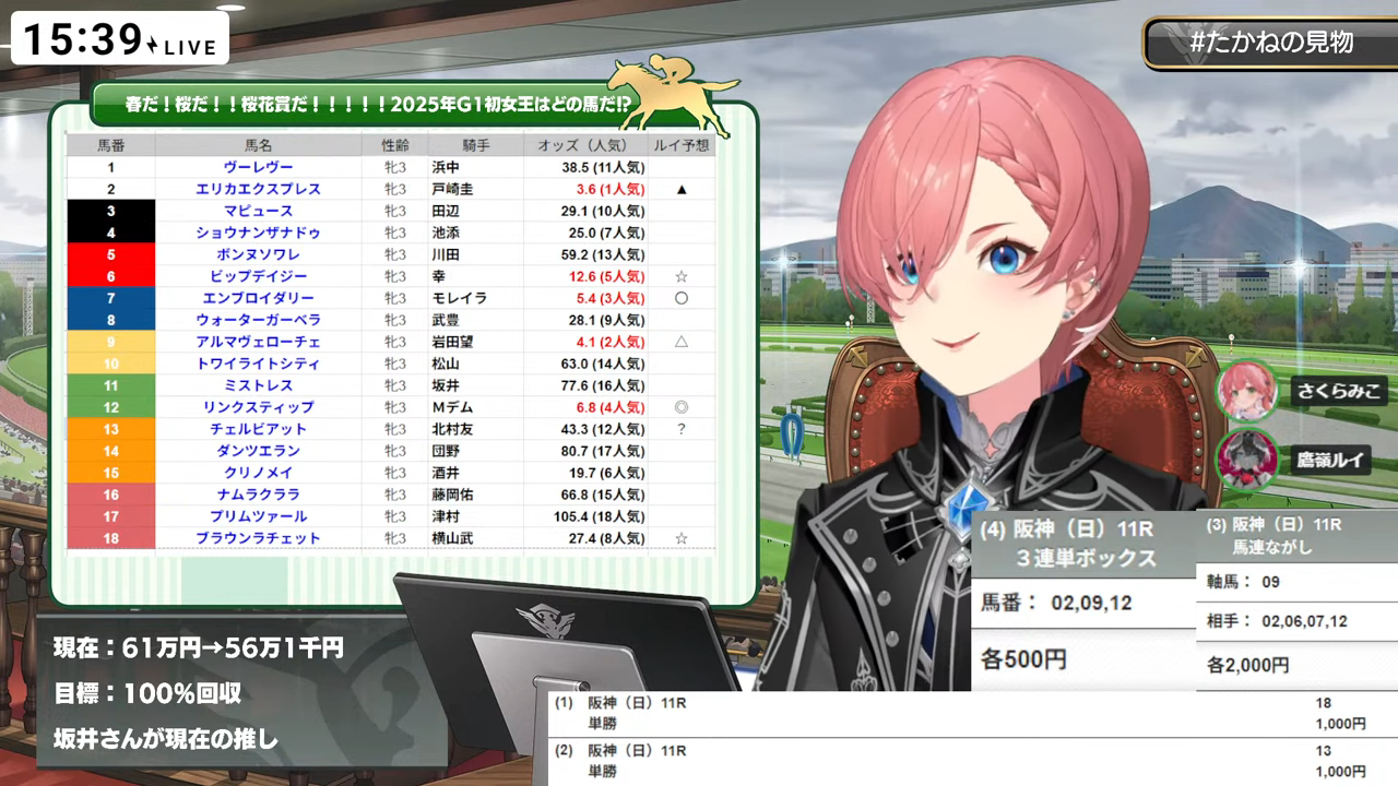 桜花賞はアルマヴェローチェ複勝買いました🐎🌸