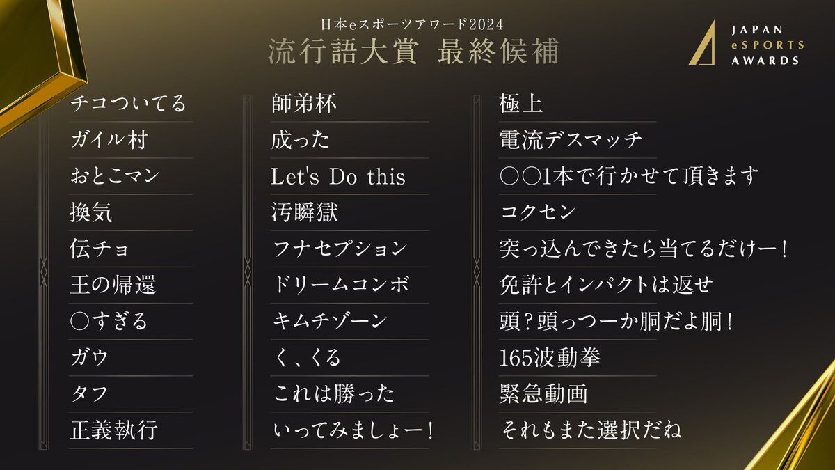 現在、投票受付中の「日本eスポーツアワード 流行語大賞2025」には以下の言葉が投票されております。