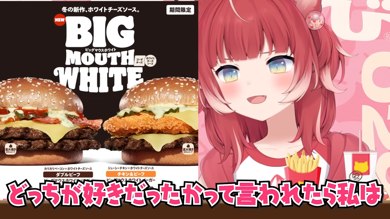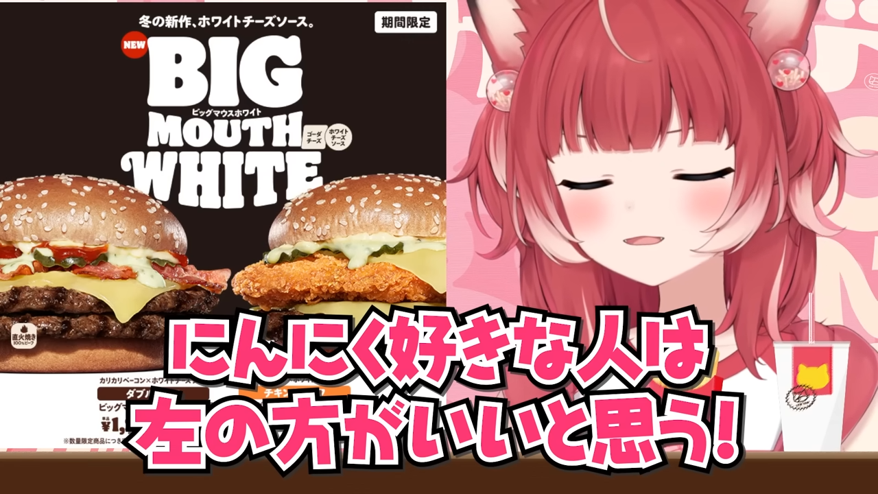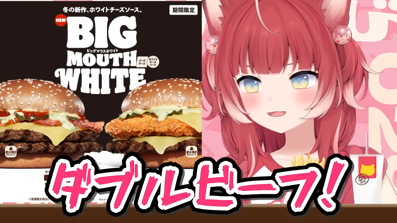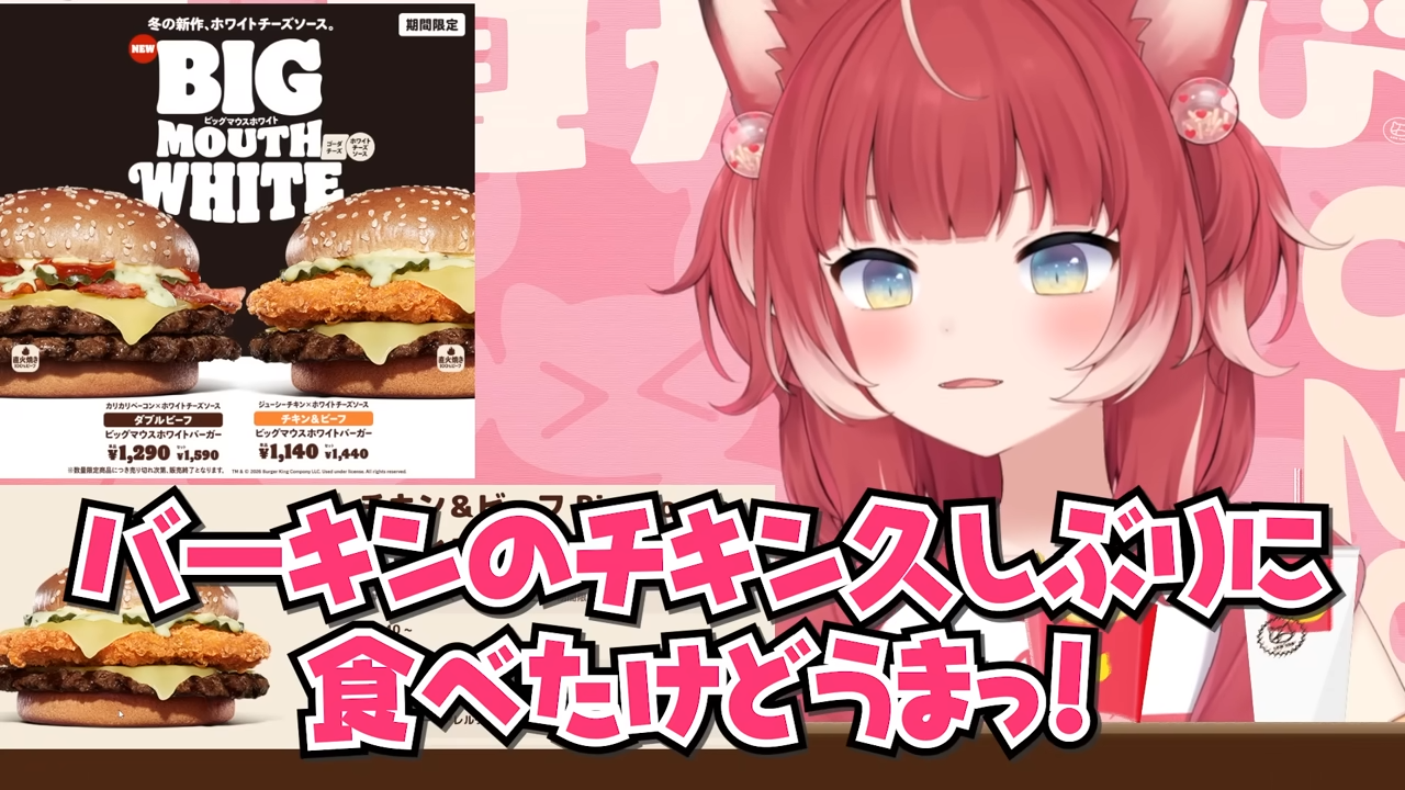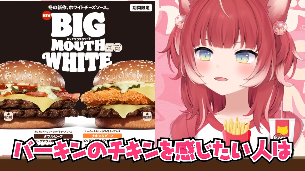 バーキン冬の新作ビッグマウスホワイトバーガーを食べ比べて本音でレビュー【赤見かるび切り抜き ダブルビーフBigMouthホワイトバーガー チキン&ビーフBigMouthホワイトバーガー 食レポ】