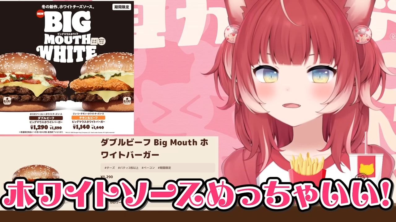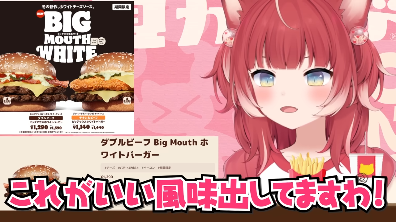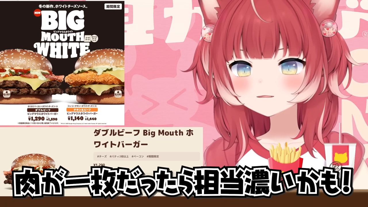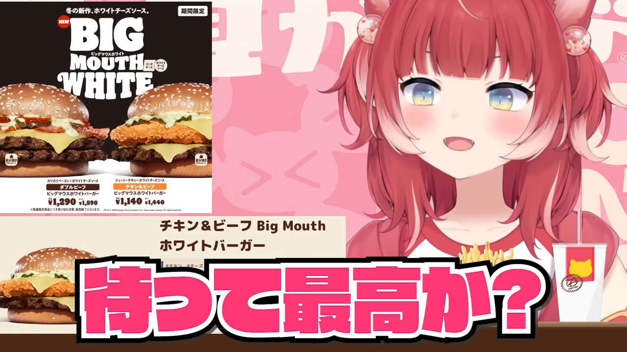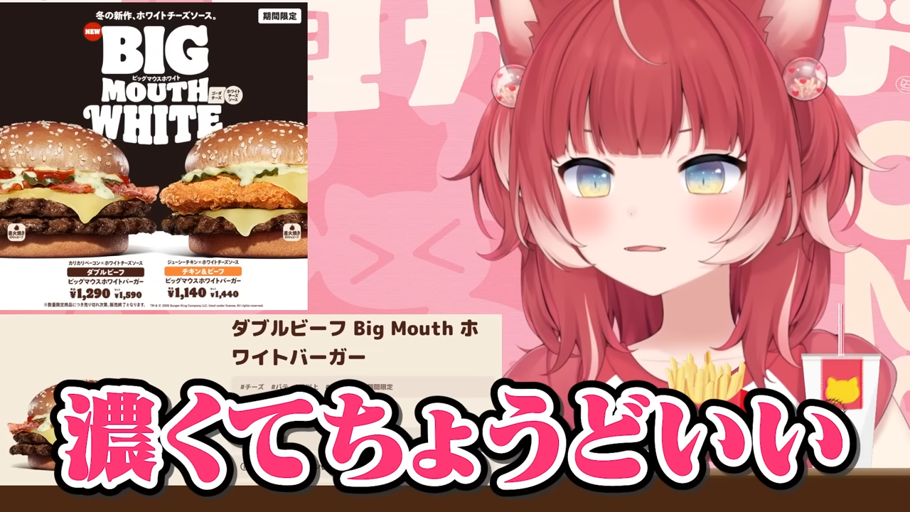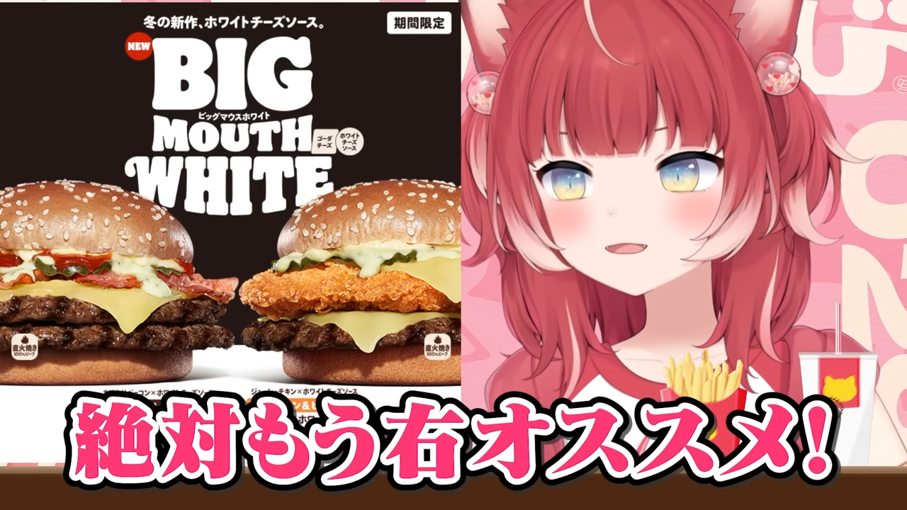 バーキン冬の新作ビッグマウスホワイトバーガーを食べ比べて本音でレビュー【赤見かるび切り抜き ダブルビーフBigMouthホワイトバーガー チキン&ビーフBigMouthホワイトバーガー 食レポ】