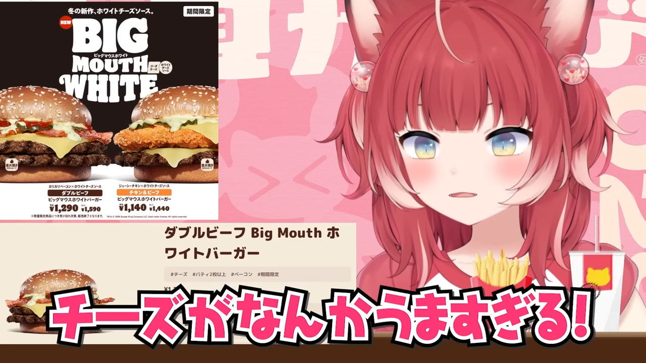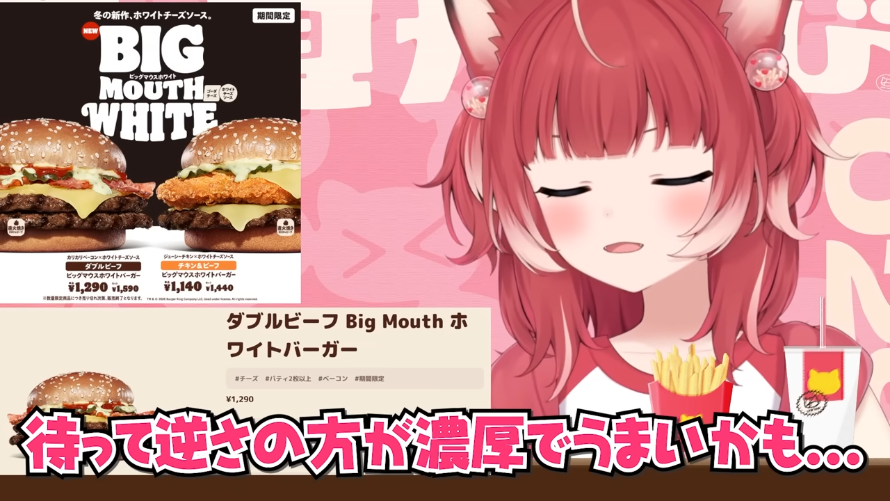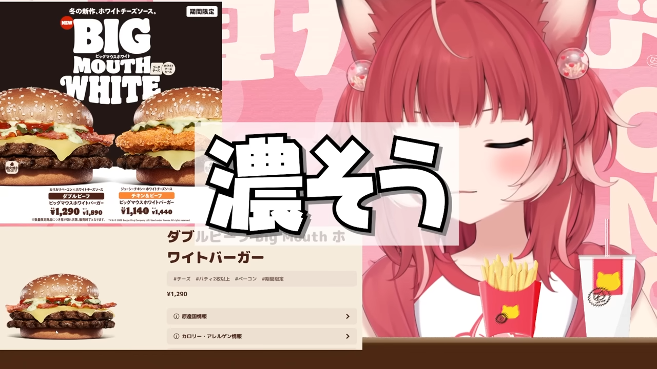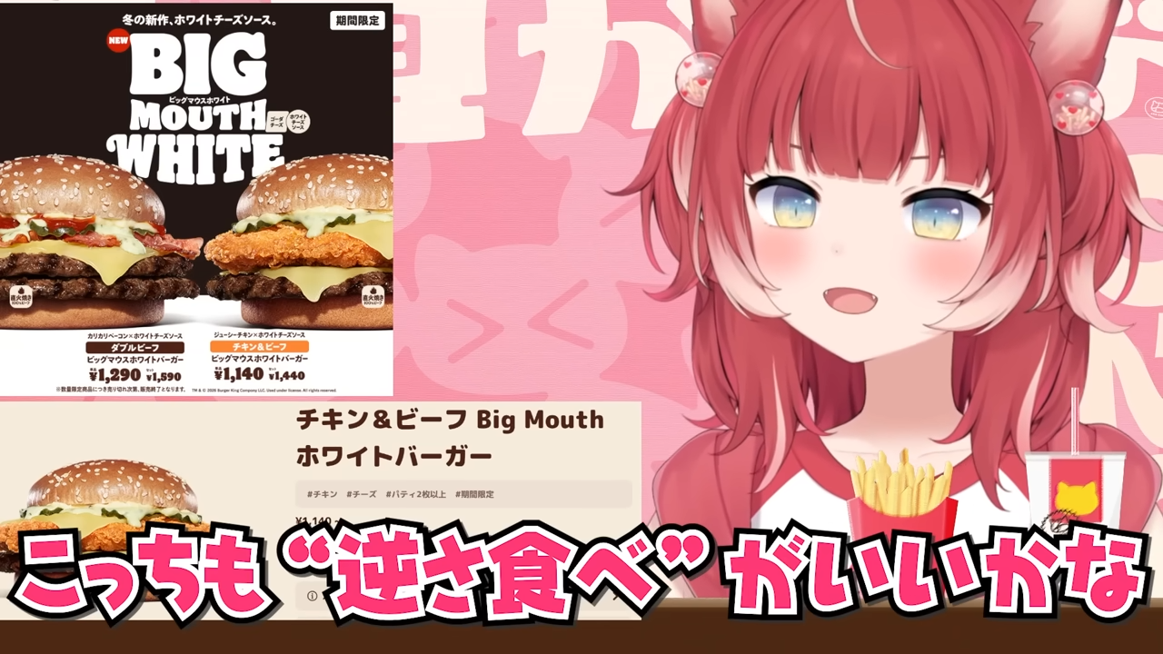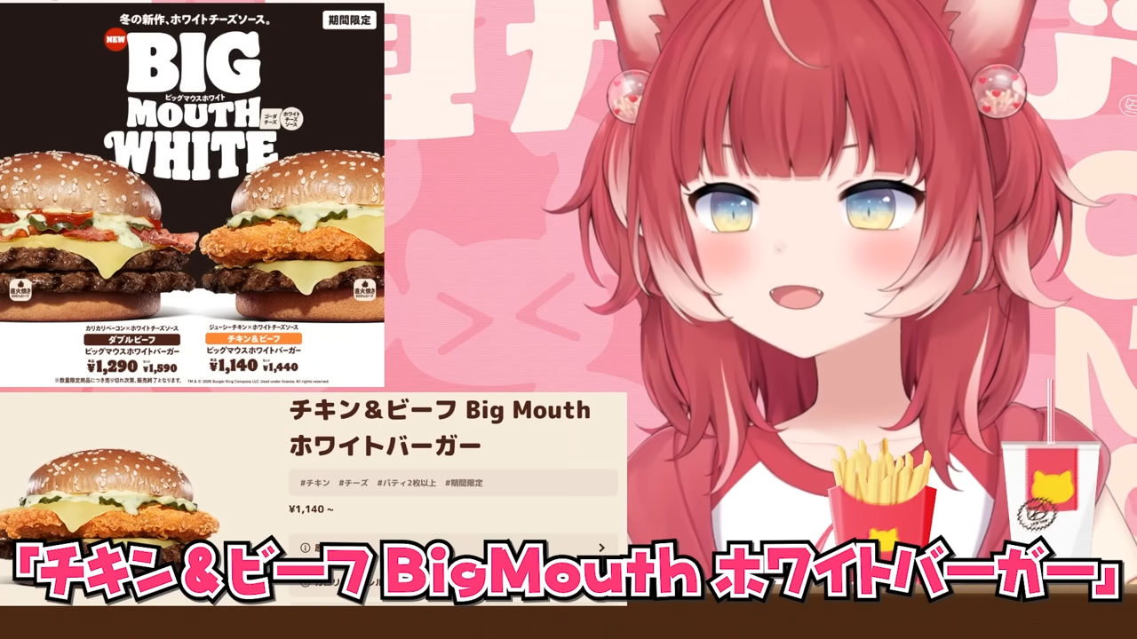 バーキン冬の新作ビッグマウスホワイトバーガーを食べ比べて本音でレビュー【赤見かるび切り抜き ダブルビーフBigMouthホワイトバーガー チキン&ビーフBigMouthホワイトバーガー 食レポ】