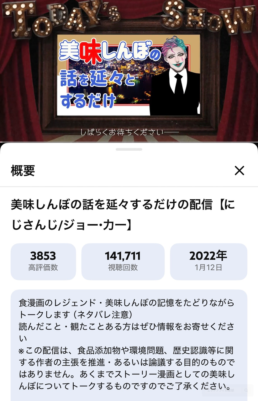 美味しんぼの話を延々するだけの配信【にじさんじ/ジョー・力一】